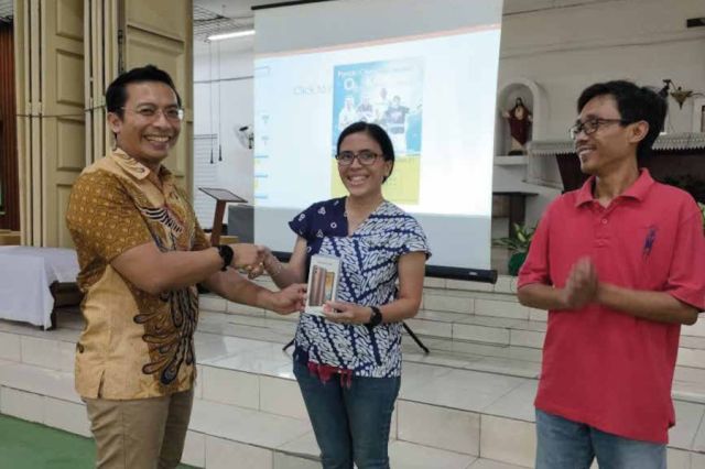 Hadiah Handphone didapatkan oleh Keluarga Oma Ina Lingkungan Yohanes Paulus 2